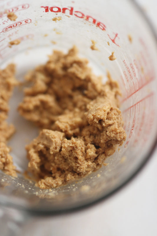 4. In a food processor or blender, add the graham crackers and process until crackers form fine crumbs. (You can also do this by hand with a fork. Lots of options to get the crumbs accomplished here.) While the food processor is running add butter. The mixture should resemble something like wet sand.