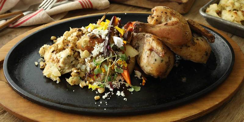 PB&J Burger, Spaghetti Squash & Beetballs, Cornish Game Hen