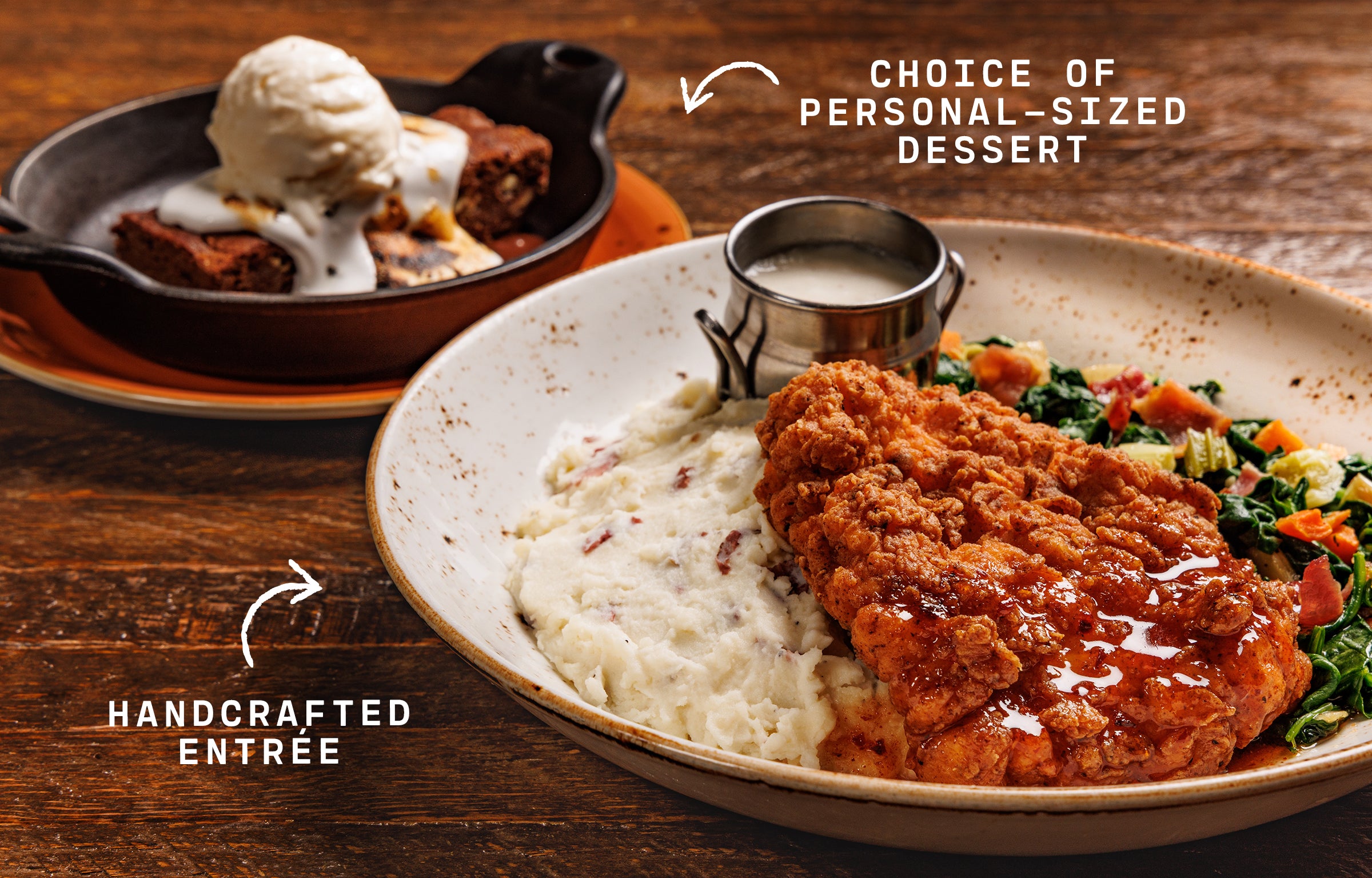 Whether you're squeezing in lunch between errands or looking for a cozy night out, this new offer makes it easy to enjoy a handcrafted entrée and a personal-sized dessert without any extra fuss.*