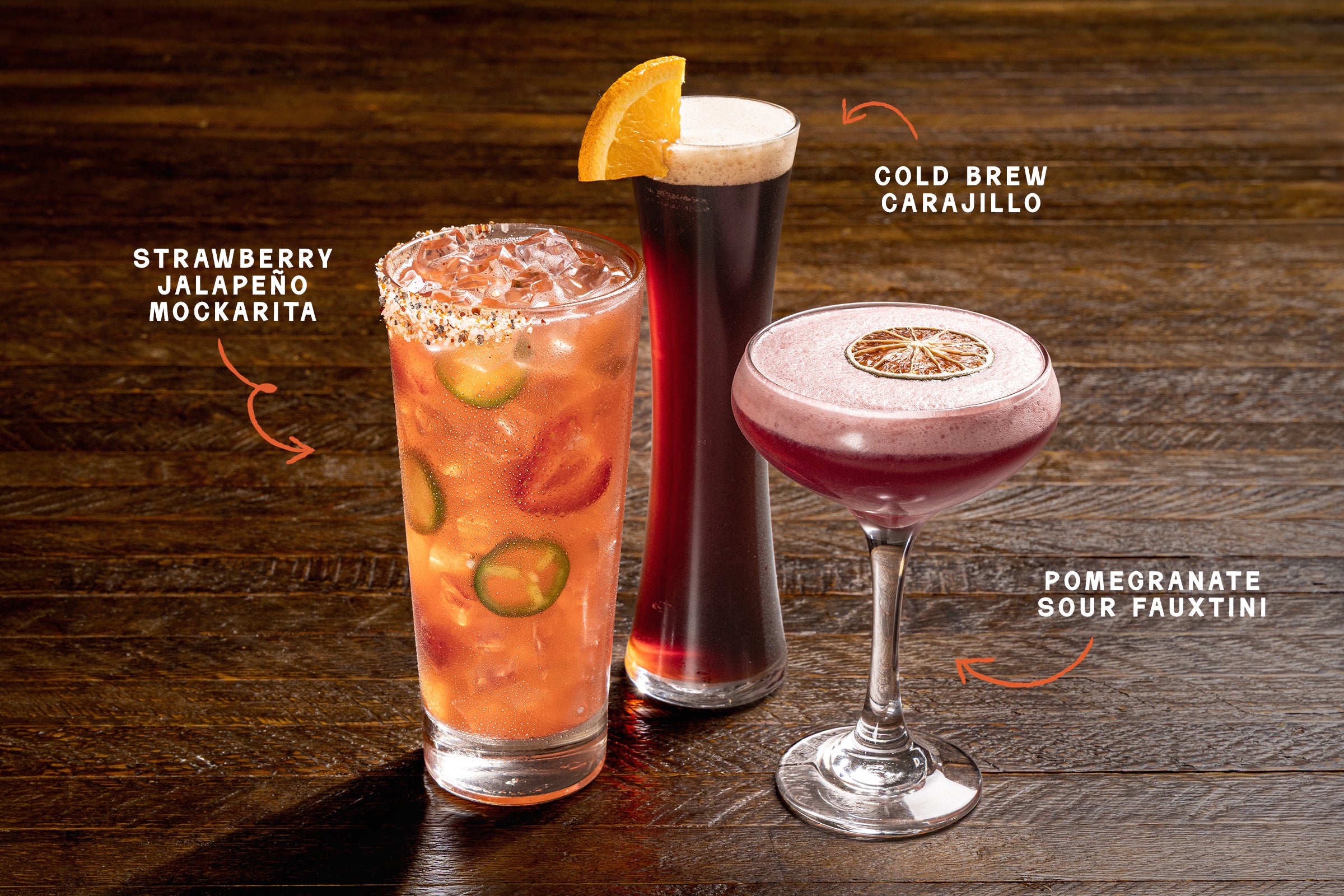 To round out the experience, we also have our lineup of handcrafted mocktails from our newest seasonal menu. These zero-proof sips are crafted from scratch with real fruit purées, housemade elixirs and seasonal ingredients. The perfect pairing when you want something festive without the alcohol.