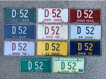 Despite the little mishap, Jerome’s interest in cars stayed with him throughout his life, and when he started a family of his own he decided to get a custom-made Ohio license plate each year with D52 written on it to represent his family. D for Didot, 5 for the number of members in his family, and 2 to present his daughters. It was supposed to be D53, since he had three daughters, but low-and-behold, that plate number was already taken. Jim says it’s become a running joke in the family as to which aunt was left off the license plate.