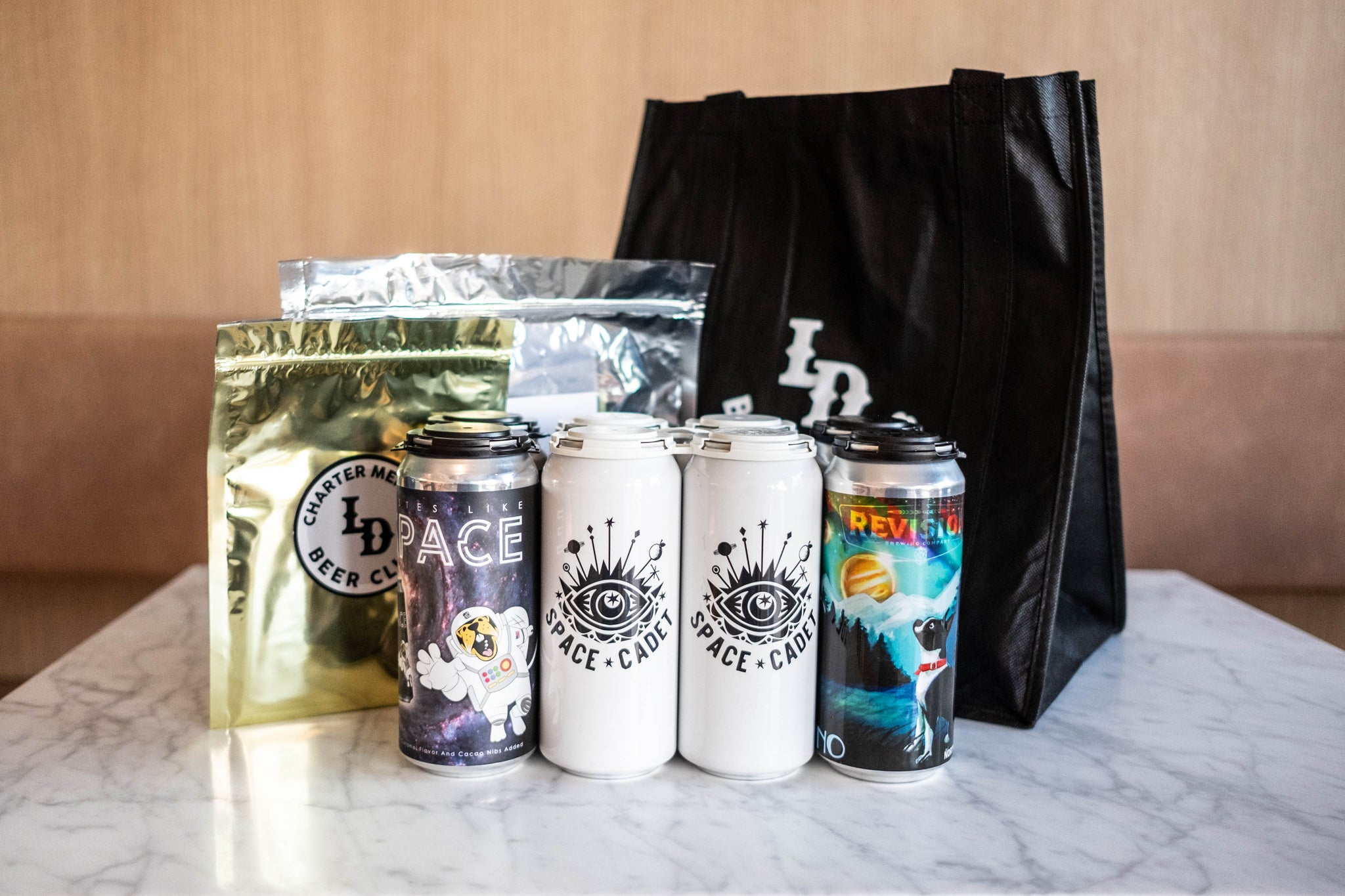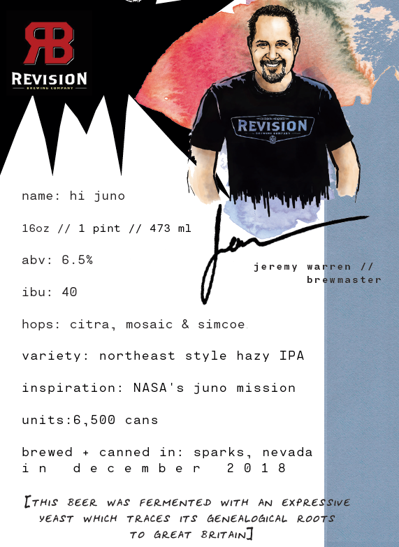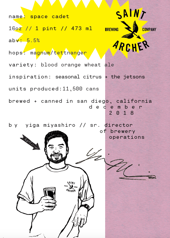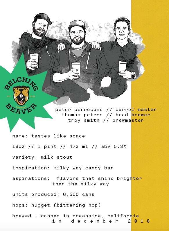 We’d like to give a special shout out to the brew teams who were willing to venture with us into the unknown. You may already know that Belching Beaver is well known for their stouts and imaginative flavors – and you can expect nothing less from your cans of Tastes Like Space – a chocolate, caramel milk stout. Newcomer Revision Brewing makes a stellar IPA, and so it was only right they do what they do best - our pal Jeremy and his team have created Hi Juno, a NE Style Hazy IPA for your drinking pleasure. And last, but not least, we’ve collaborated with Saint Archer Brewing to create a seasonal can we call, Space Cadet – a totally mouth-watering blood orange wheat that we hope your taste buds will be over the moon for.