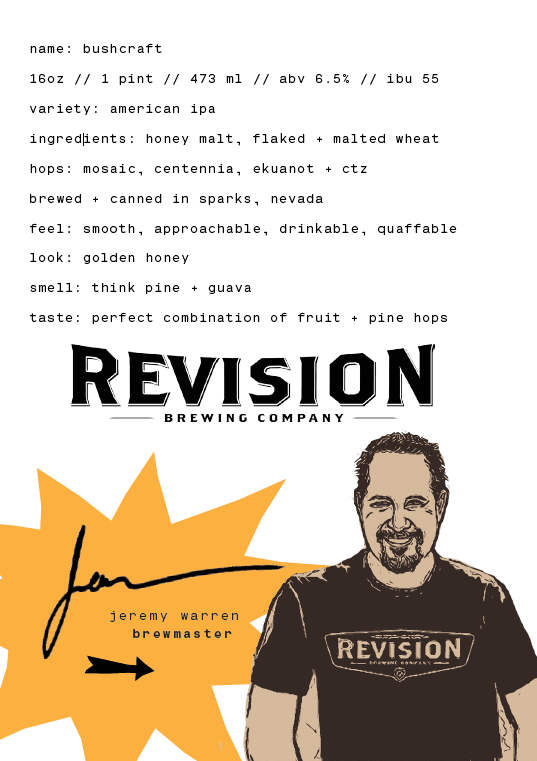 This is our second collab with Nevada’s own, Revision Brewing Company. Some of you may already know, these guys are known for brewing mouth-watering prominently hop-forward, world-class beers and this time around, they have blessed us with an insane American style IPA – a.k.a. Bushcraft. In addition to the Bushcraft 4-pack, we have two new brew partners featured in this kit… enter Mission Brewery out of East Village, San Diego, well-known for their smooth + malty IPA – Shipwrecked. For this release, they went back to the OG Shipwrecked recipe and added a splash of tangerine juice to create a crushable double IPA called Lil’ DIPA. (mouth watering yet?!) Last but not least, we bring you Almanac Brewing out of Northern California. We love that Damian and his team are brewing “farm-to-barrel” – meaning each harvest they partner with a different local farm to supply the fruit used for their next beer. (So. Rad.) They complete your Q2 kit with two cans of Basecamp Imperial Pilsner.