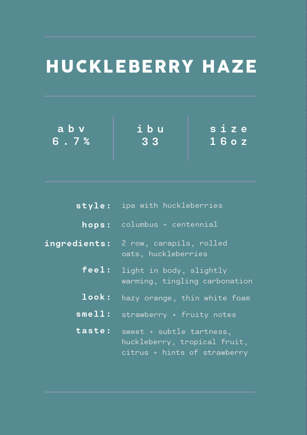 First up, we have Huckleberry Haze, an IPA known for its refreshing notes of huckleberry, tropical fruit, citrus, and strawberry. We can’t can this stuff fast enough. (If you don’t know, soon you’ll know.)