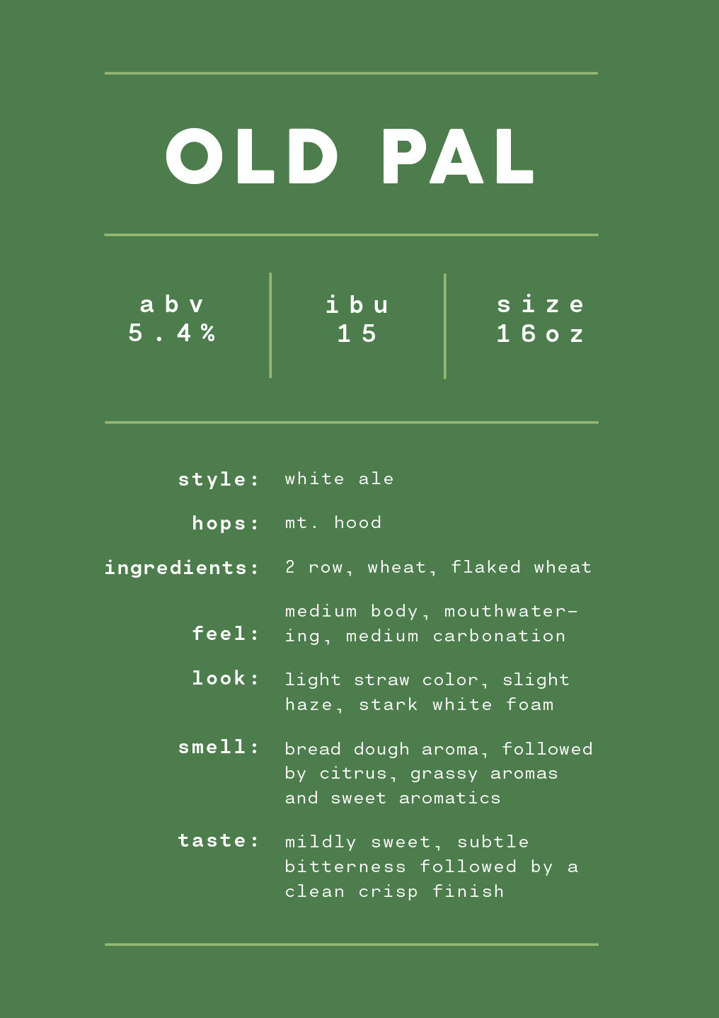 Followed by the official debut of Old Pal white ale, inspired by the great American pastime of catch & release – it’s familiar yet exciting with a light straw color, cut with stark white foam, for a clean, crisp finish.