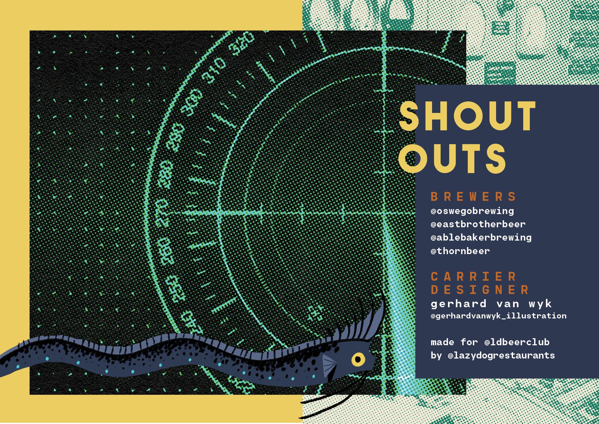 Brace yourself for your journey into the liquid unknown. Be sure to share your own unique discoveries and any pics of your new brews by tagging @lazydogrestaurants #ldbeerclub. As always, we thank you for your membership and support.